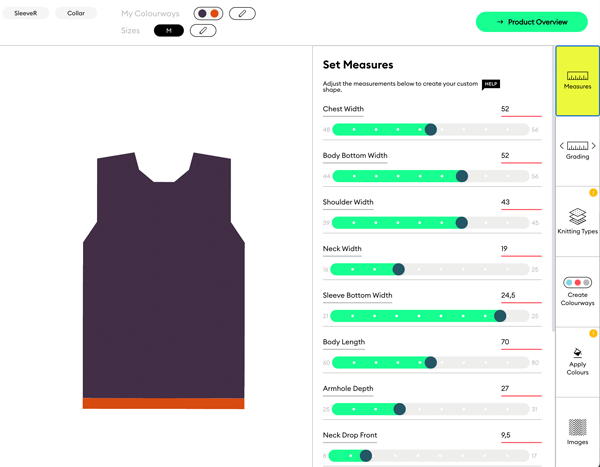 Wähle aus einer Vielzahl von Optionen für Bündchen und Abschlüssen — darunter Tubular-und Ribs in unterschiedlichen Ausführungen. Jedes Detail der Kantenkonstruktion ist direkt in der Software wählbar — präzise, konsistent und produktionsbereit.